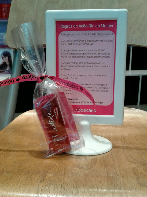 Celebrando o Dia da Mulher, as lojas Boticário vão oferecer, nos dia 7 e 8 de Março um dos maiores simbolos femininos, um baton!!!